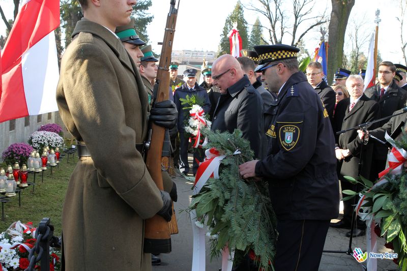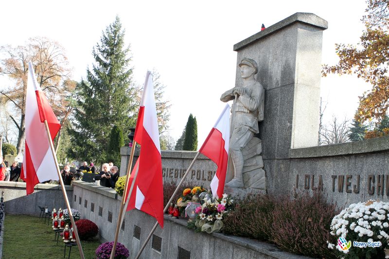 Kolejnym miejscem obchodów był cmentarz komunalny w Nowym Sączu przy ul. Tadeusza Rejtana, gdzie znajduje się odsłonięty w latach międzywojennych pomnik legionistów z czasów I wojny światowej. Przy pomniku sądeccy parlamentarzyści, przedstawiciele władz samorządowych, służb mundurowych i organizacji kombatanckich złożyli wieńce i wiązanki kwiatów.