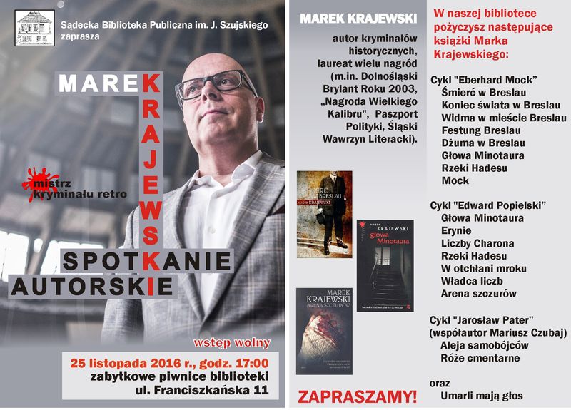 Marek Krajewski, jeden z najbardziej czytanych autorów kryminałów, spotka się ze swoimi czytelnikami w Sądeckiej Bibliotece Publicznej. Spotkanie odbędzie się w najbliższy piątek, 25 listopada.