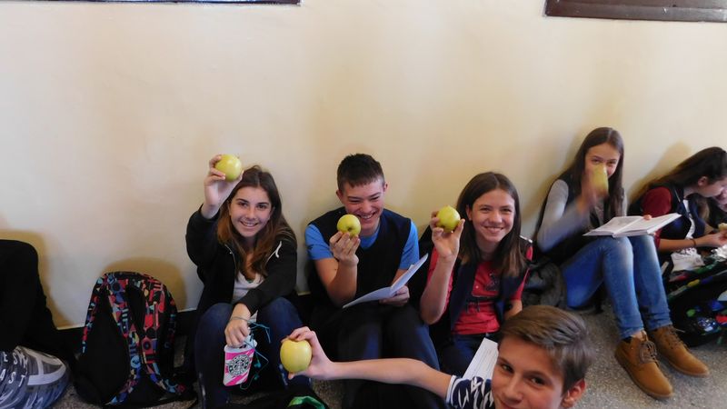 Kolejną odsłoną Święta był happening na terenie Gimnazjum. Uczniowie i nauczyciele również częstowali się jabłkami i cukierkami wymieniając się życzeniami. Wyświetlany był pokaz slajdów.