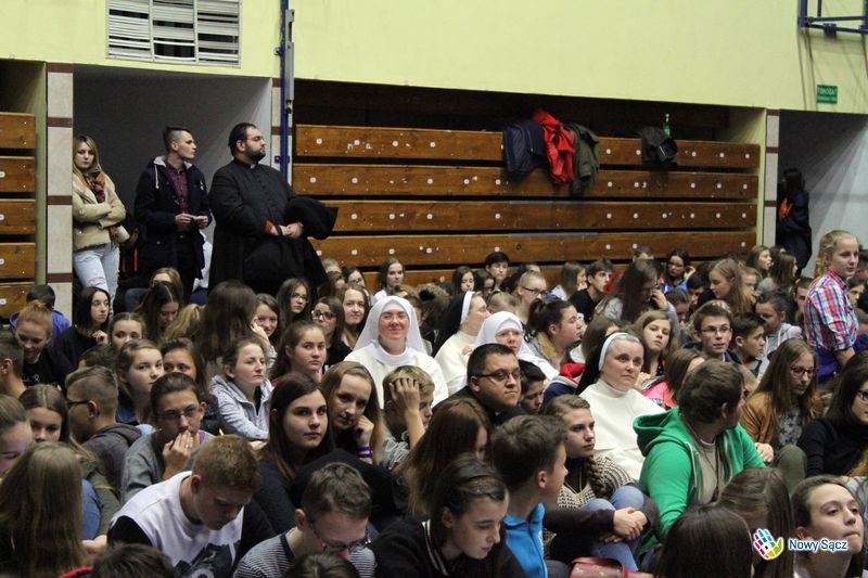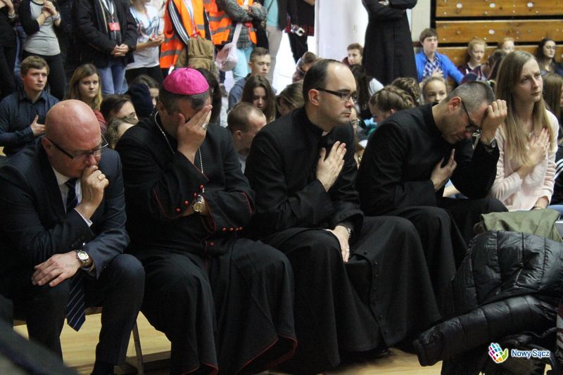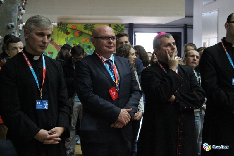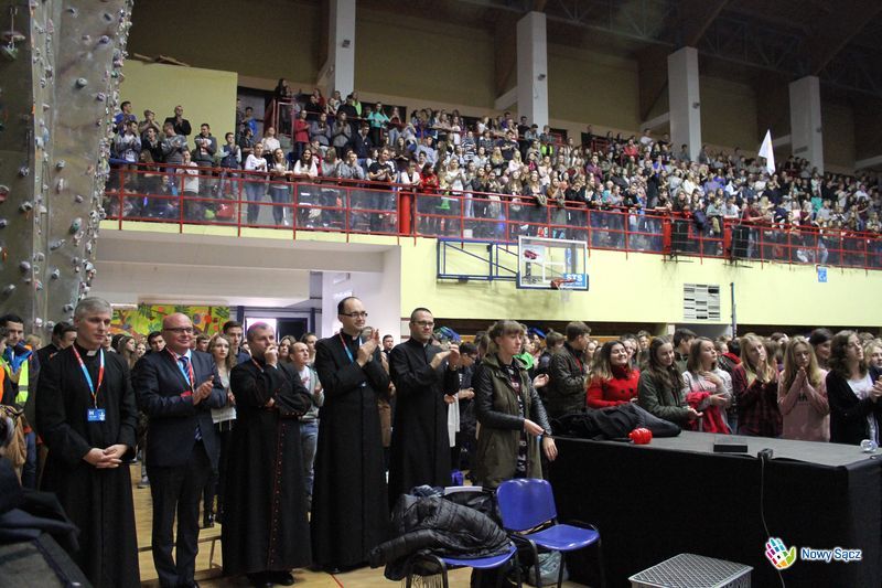 Zgromadzoną w hali MOSiR młodzież powitał Prezydent Miasta Nowego Sącza Ryszard Nowak. - To dla mnie wielka przyjemność patrzeć na tylu młodych ludzi. To owoc światowych Dni Młodzieży, który świadczy o tym, że zarówno Nowy Sącz, jak i Diecezja Tarnowska żyły tymi dniami i były to dla nich niezwykle ważne wydarzenia. Życzę wam głębokich przeżyć i zachęcam do tego, by takie spotkania odbywały się często. Być może Światowe Dni Młodzieży nie odbędą się już w takiej formie i tak jak to miało miejsce w tym roku, ale będziemy o nich pamiętać, bo było to wydarzenie, które zarówno dla młodych, jak i starszych świadczyło o tym, że jesteśmy gotowi służyć nie tylko Panu Bogu, ale także sobie nawzajem. Daliśmy świadectwo nie tylko sobie, ale całemu światu. Życzę wam wrażeń duchowych, ale także tych przyjacielskich - powiedział prezydent.