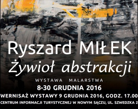 "Żywioł abstrakcji" – taki tytuł nosi wystawa prac znanego sądeckiego pastelisty Ryszarda Miłka w nowosądeckim Centrum Informacji Turystycznej przy ul. Szwedzkiej 2. Wernisaż wystawy odbędzie się 9 grudnia (piątek); początek o godz. 17:00. Wystawę będzie można oglądać do 30 grudnia.