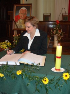 Wczoraj do księgi kondolencyjnej w bazylice św. Małgorzaty wpisali się: prezydent, wiceprezydenci, sekretarz miasta.