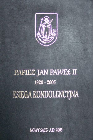 Księgę otwiera zdjęcie Ojca Świętego przepasane żałobną wstążką oraz epitafium: