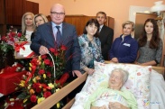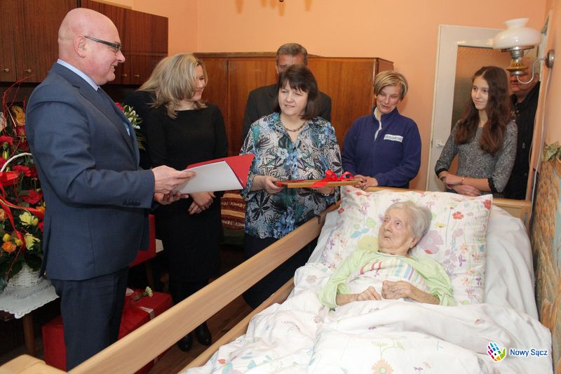 Życzenia zdrowia i wszelkiej pomyślności, a także listy gratulacyjne od Prezesa Rady Ministrów oraz Wojewody Małopolskiego, obchodzącej setne urodziny Leokadii Bąk przekazał prezydent Nowego Sącza Ryszard Nowak. Podczas wizyty u Jubilatki najlepsze życzenia złożyli również wicedyrektor nowosądeckiego oddziału Zakładu Ubezpieczeń Społecznych Agata Michalik oraz kierownik Urzędu Stanu Cywilnego Małgorzata Antkiewicz-Wójs.