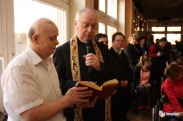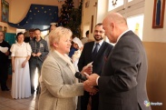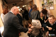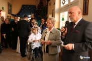 Obecny z niepełnosprawnymi uczestnikami Warsztatów Terapii Zajęciowej ks. Józef Kurek odmówił modlitwę i poświęcił opłatki, a następnie wraz z prezes Jadwigą Jasińską zaprosił do składania sobie świątecznych życzeń.