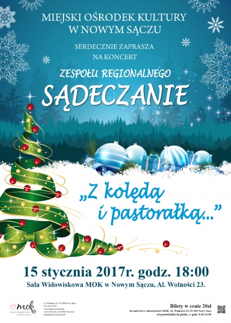 Miejski Ośrodek Kultury w Nowym Sączu zaprasza w dniach 14 i 15 stycznia 2017 r. do swojej siedziby przy Al. Wolności 23 na kolejne koncerty kolęd i pastorałek.