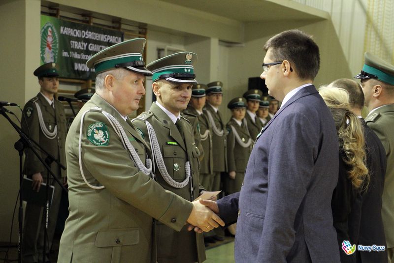 Podczas uroczystego apelu wręczone zostały również odznaki pamiątkowe Karpackiego Ośrodka Wsparcia Straży Granicznej w Nowym Sączu, które odebrali między innymi Komendant Główny Straży Granicznej płk Marek Łapiński, w imieniu prezydenta Ryszarda Nowaka zastępca prezydenta Wojciech Piech oraz starosta nowosądecki Marek Pławiak.