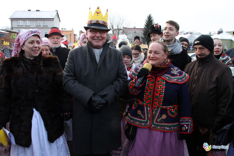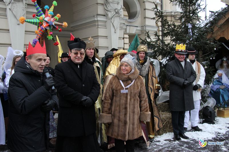 Finałową część Nowosądeckiego Pokłonu Trzech Króli przed sądeckim ratuszem poprowadzili Barbara Porzucek i Jakub Bulzak. Szczególne podziękowania dla organizatorów przekazał prezydent Nowego Sącza Ryszard Nowak. - Bardzo się cieszę, że mimo takiego mrozu i zimna jesteśmy tutaj wszyscy razem. Stało się już tradycją, że spotykamy się w ten dzień na sądeckim Rynku tuż po pochodzie Trzech Króli. Serdecznie dziękuję inicjatorce wydarzenia pani Bożenie Jawor, która wymyśliła to przed pięciu laty i również jej należą się ukłony - powiedział Ryszard Nowak.