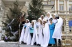 Pochód wyruszyły z parkingu przy ul. Gwardyjskiej (postój taksówek bagażowych), a na jego czele Gwiazda Betlejemska z chorągwiami, a także paziowie i giermkowie z darami. Tuż za nimi szli główni aktorzy widowiska, czyli Trzej Królowie: Kacper, Melchior i Baltazar. W te role wcielili się Jan Pasiut, Mariusz Horowski i Mariusz Brodowski. Wszyscy razem, w towarzystwie grup kolędniczych z nowosądeckich parafii, Pałacu Młodzieży oraz zespołu Lachy, śpiewali tradycyjne kolędy i pastorałki. O stronę muzyczną zadbał Aleksander Porzucek.