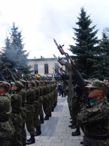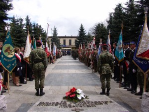 Po mszy św. w kaplicy NPNMP na Starym Cmentarzu poczty sztandarowe, delegacje władz i młodzieży szkolnej, związków kombatanckich zgromadziły się wzdłuż alei zasłużonych przed Pietą Sądecką.