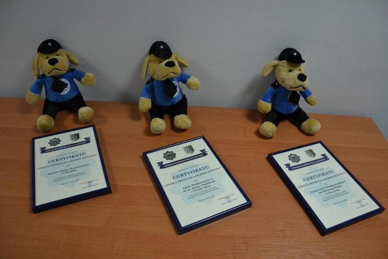 Certyfikaty przyznał Komendant Wojewódzki Policji w Krakowie - nadinsp. Tomasz Miłkowski, a wręczył je na ręce dyrektor Haliny Stanek oraz szkolnego koordynatora projektu mgr Eweliny Juryk, Komendant Miejski Policji mł. insp. Jarosław Tokarczyk.