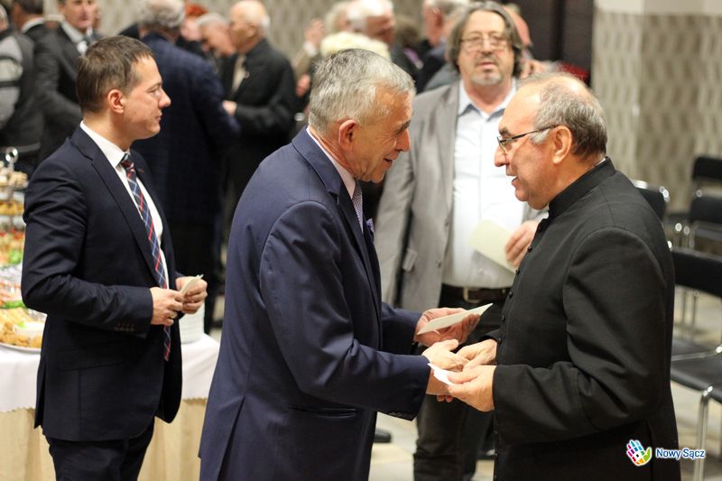 Po zakończonej mszy świętej, uczestnicy przeszli do auli do mu parafialnego, gdzie odbyło się noworoczne spotkanie, które poprowadził szef sądecko-gorlickiego oddziału NSZZ "Solidarność" Krzysztof Kotowicz. Życzenia uczestnikom opłatkowego spotkania złożył miedzy innymi przewodniczący małopolskiej "Solidarności" Wojciech Grzeszek, a także sądeccy parlamentarzyści. W imieniu władz miasta najlepsze życzenia przekazali zastępca prezydenta Nowego Sącza Wojciech Piech oraz przewodnicząca Rady Miasta Bożena Jawor.