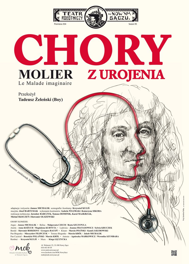 "Chory z urojenia" Moliera w Miejskim Ośrodku Kultury w Nowym Sączu. Komedię wybitnego francuskiego dramaturga w przekładzie Tadeusza Żeleńskiego (Boya), w adaptacji i reżyserii Janusza Michalika, scenografii ikostiumach według projektu Krzysztofa Kulisia i z muzyką JózefaBartusiaka przygotował Teatr Robotniczy im. Bolesława Barbackiego.