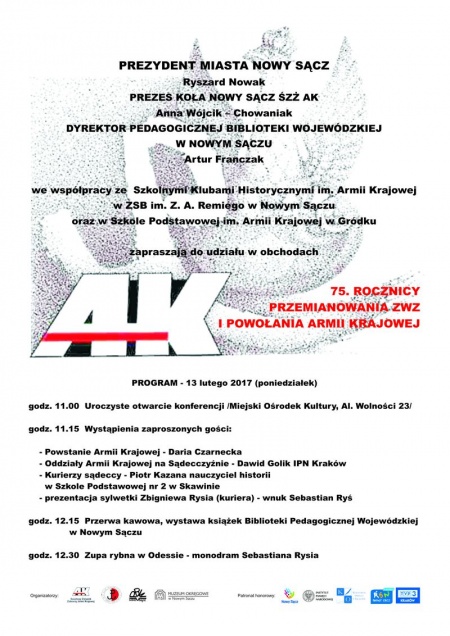 Na konferencje zapraszają prezydent Nowego Sącza Ryszard Nowak, prezes nowosądeckiego koła Światowego Związku Żołnierzy AK Anna Wójcik-Chowaniak i dyrektor Pedagogicznej Biblioteki Wojewódzkiej w Nowym Sączu Artur Franczak. Konferencja została zorganizowana we współpracy ze Szkolnymi Klubami Historycznymi w Zespole Szkół Budowlanych w Nowym Sączu i w Szkole Podstawowej w Gródku. Początek spotkania - godz. 11:00.