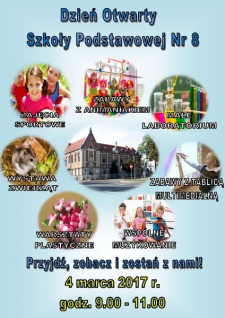 W pierwszą sobotę marca (4 marca 2017 r.) Szkoła Podstawowa Nr 8 z Oddziałami Integracyjnymi im. Władysława Jagiełły w Nowym Sączu serdecznie zaprasza na dzień otwarty.