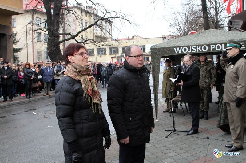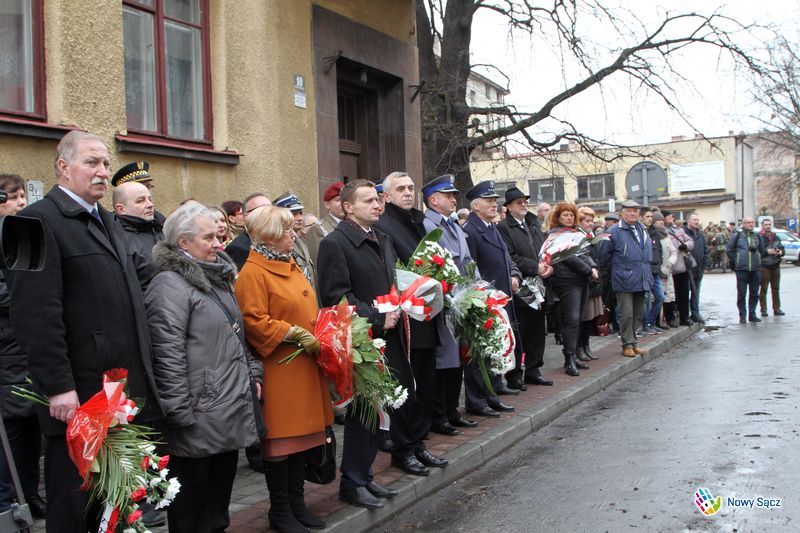 O godz. 13:30 rozpoczęły się uroczystości zorganizowane przed budynkiem Wojskowej Komendy Uzupełnień, przez Światowy Związek Żołnierzy Armii Krajowej koło Nowy Sącz. Kwiaty pod tablicą upamiętniającą ofiary dwóch reżimów złożyli przewodnicząca Rady Miasta Bożena Jawor, dyrektor Wydziału Kultury, Sportu, Komunikacji Społecznej i Promocji Józef Kantor, kierownik Kancelarii Prezydenta Małgorzata Grybel oraz Komendant Straży Miejskiej Dariusz Górski. Wiązanki złożyli także sądeccy parlamentarzyści Jan Duda i Józef Leśniak, przedstawiciele Powiatu Nowosądeckiego, członkowie Światowego Związku Żołnierzy Armii Krajowej, przedstawiciele służb mundurowych oraz środowisk i organizacji patriotycznych.