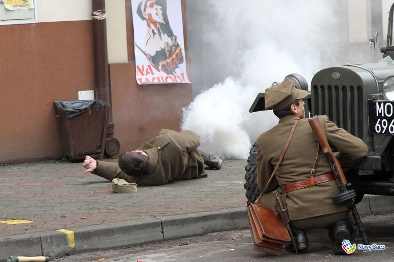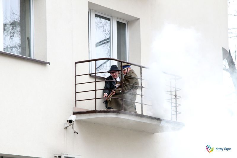 Biorący udział w wydarzeniu mieszkańcy miasta zobaczyli także inscenizację ataku na budynek Powiatowego Urzędu Bezpieczeństwa Publicznego w Nowym Sączu (obecnie budynek WKU) w wykonaniu grupy rekonstrukcyjnej Stowarzyszenie Żandarmeria.