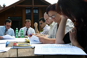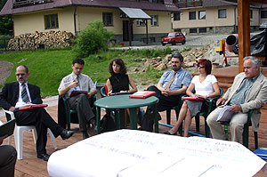 W trakcie warsztatów w Piwnicznej powstał pomysł, by wykorzystać efekty pracy zespołu trzeciego i czwartego w ten sposób, aby po niewielkich zabiegach korektorskich przygotować z obu - dość zbieżnych zadań - jeden projekt i również rekomendować go gospodarzom regionu do realizacji.