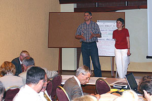 57 uczestników piwniczańskich warsztatów . ich gospodarzem był burmistrz Miasta i Gminy Piwniczna Zdrój Edward Bogaczyk, którzy uczestniczyli w głosowaniu nad przedstawionymi projektami przyznając punkty w poszczególnych kategoriach opisujących szczegółowo projekty, najwyżej ocenili projekt drugi: "Sądeckie centrum inwestycyjne - biuro obsługi inwestora - punkt informacji i baza możliwości inwestycyjnych" (2926 punktów) i pierwszy: "Rozbudowa ścieżek rowerowych, uporządkowanie szlaków turystycznych z infrastrukturą, budowa punktów widokowych" (2753 pkt). Na trzecim miejscu znalazł się projekt czwarty, na czwartym - trzeci.