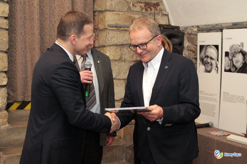 Zastępca prezydenta Wojciech Piech wręczył uczestnikom wyprawy, która zakończyła się pobiciem rekordu Guinessa pamiątkowe upominki od władz miasta Nowego Sącza.
