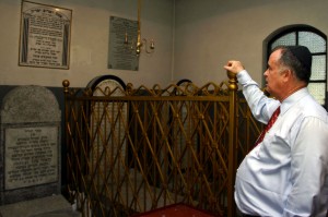 Z nieistniejącym już światem sądeckich Żydów zapoznał ambasadora Jakub Miller, opiekun cmentarza żydowskiego, zasłużony w ocalaniu od zapomnienia tradycji i kultury ludności żydowskiej, stanowiącej przed II wojną światową jedną trzecią obywateli miasta. Jakub Miller podkreślał, że Nowy Sącz jest ważnym miejscem dla judaizmu, a przede wszystkim dla chasydów, strażników religii mojżeszowej. Tu bowiem działała najpotężniejsza w Małopolsce dynastia cadyków, zapoczątkowana przez Chaima Halbersztama, potomka wybitnych rabinów Aszkenazych. Chaim Halbersztam (zmarł w 1875 r.) prowadził w Sączu słynną szkołę teologiczną -