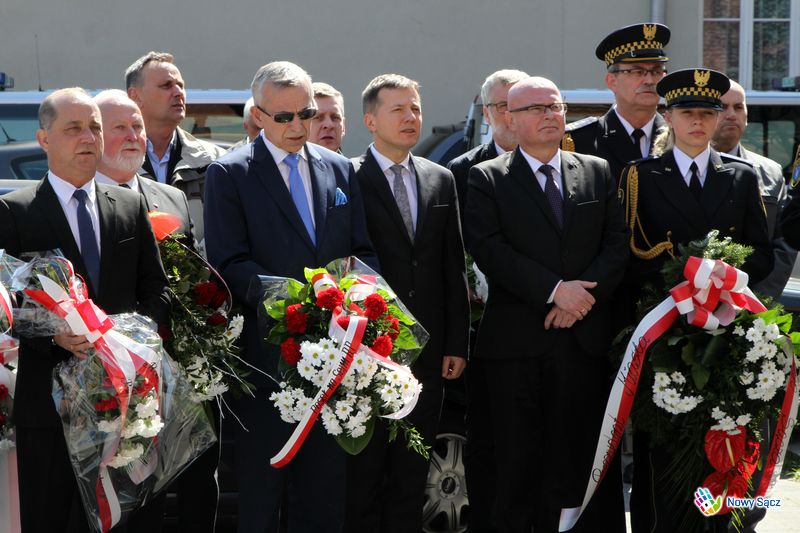 Po zakończonej mszy świętej, uczestnicy obchodów 77. rocznicy ludobójstwa w Katyniu wyszli przed kościół. Tam delegacje władz miasta i powiatu, sądeckich parlamentarzystów, służb mundurowych, kombatantów, Sybiraków, Prawa i Sprawiedliwości, Gazety Polskiej, a także działaczy NSZZ Solidarność, złożyły symboliczne wiązanki kwiatów pod Tablicami Katyńskimi.