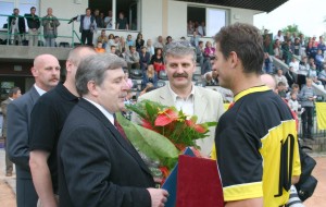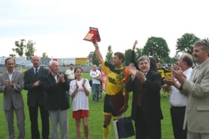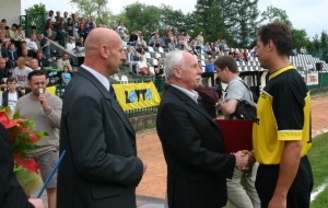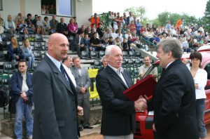 Prezydent Nowego Sącza Józef Antoni Wiktor przekazał prezesowi Klubu Kazimierzowi Sasowi okolicznościowy grawerton.