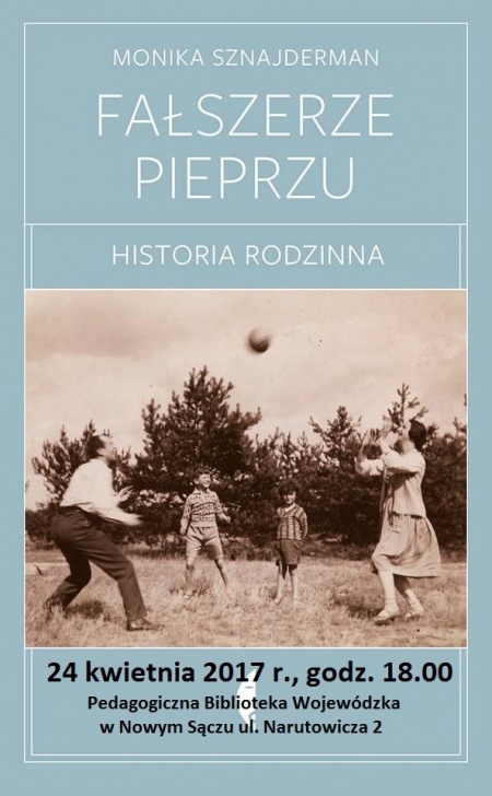 "Książka o pamięci". Tak Monika Sznajderman określa swoją ostatnią książkę pt. Fałszerze pieprzu. Spotkanie z autorką odbędzie się 24 kwietnia (poniedziałek) w Pedagogicznej Bibliotece Wojewódzkiej w Nowym Sączu.