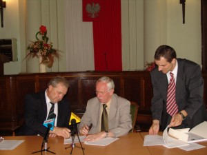 Dziś w sądeckim Ratuszu prezydent Józef Antoni Wiktor – w obecności wiceprezydent Zofii Pieczkowskiej, dyrektora Wydziału Inwestycji UM Zygmunta Pawlaka oraz prasy, radia i telewizji - podpisał umowę z prezesem Przedsiębiorstwa Produkcyjno Usługowo– Handlowego „WOLIMEX” (z siedzibą w Limanowej) Eugeniuszem Wojakiem na wykonanie sieci rozdzielczej kanalizacji sanitarnej w dzielnicy Zawada.