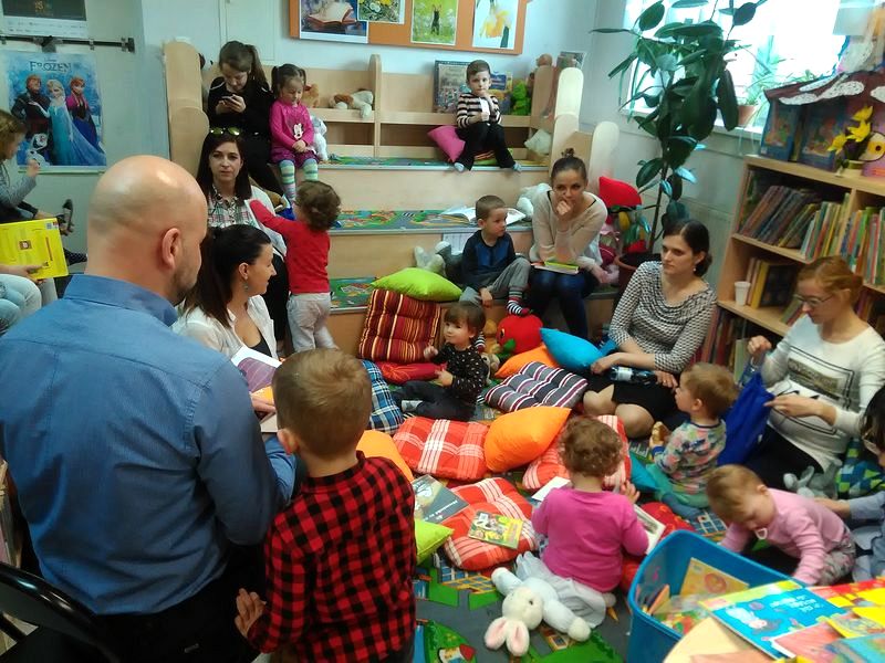 Uczestnikom spotkania została zaprezentowana oferta wydawnicza wydawnictw SKRZAT i KLETT. Mamy oraz ich pociechy wysłuchały przygód małej Lenki, a jedna z mam przeczytała opowiadanie ze zbioru pt. "Przygody leśnych przyjaciół". Całości dopełniła wesoła muzyka i układanie klocków przez najmłodszych czytelników.