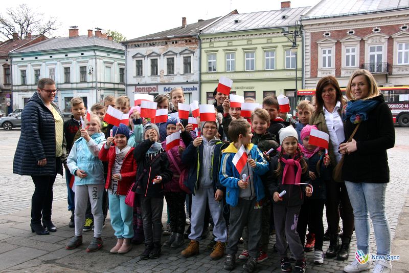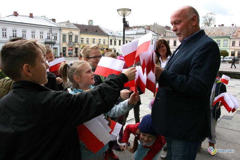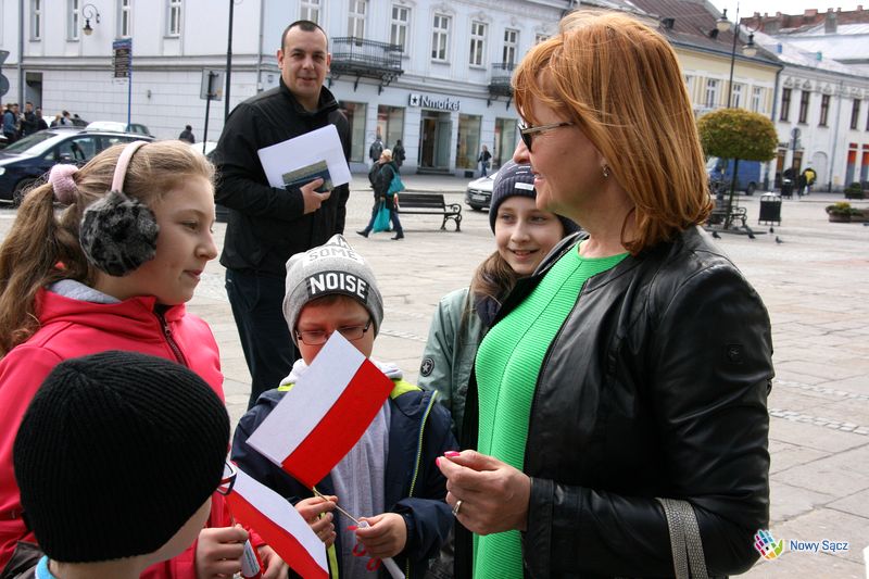 Czy można uczyć patriotyzmu w niebanalny sposób? Można. Udowadnia to nowosądecka Szkoła Podstawowa nr 14, która zorganizowała akcję rozdawania biało-czerwonych flag na sądeckim rynku. Dzieci wykonały flagi same. Pękiem biało-czerwonych flag został obdarowany także zastępca prezydenta Nowego Sącza Jerzy Gwiżdż.