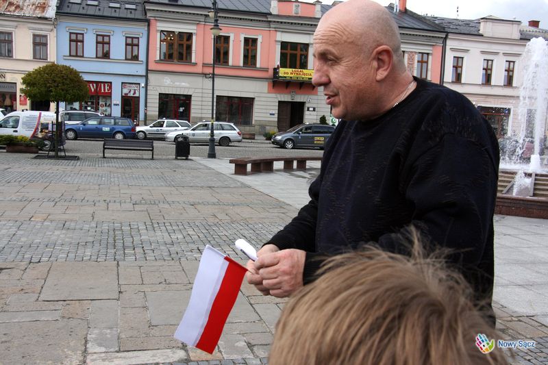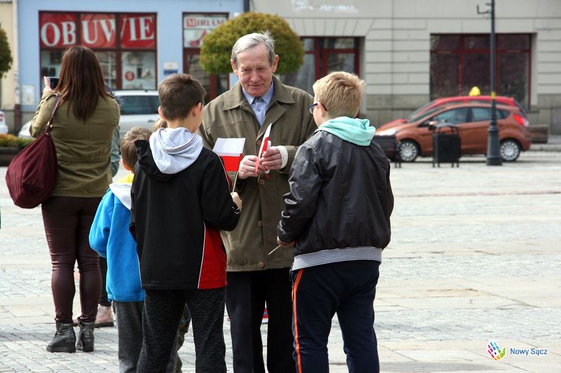 - To jest bardzo dobry pomysł, a dzieciaki gonią, rozdają i mają raj. Jest święto flagi, to dlaczego nie? – uśmiecha się obdarowany przed chwilą Ryszard Juszkiewicz. – Trzeba być dumnym, że się ma biało-czerwoną – dodaje inna sądeczanka, z uśmiechem biorąc flagę od zaaferowanych uczniów z "czternastki".