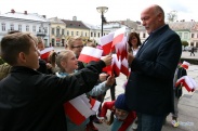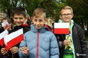 - Bardzo się cieszę, że manifestujecie pod flagą biało-czerwoną – powiedział Jerzy Gwiżdż do uczestników akcji. Rozdawanie flag ma związek ze stosunkowo młodym świętem państwowym, przypadającym 2 maja Dniem Flagi. Flagi zostały przygotowane podczas spotkań, które odbywają się w szkole w ramach innowacyjnego projektu "Wielkie sprawy w naszych rękach".