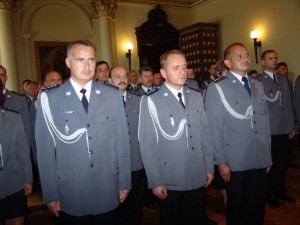 Dziś w Nowym Sączu obchodzono Święto Policji. Rano funkcjonariusze złożyli kwiaty pod Tablicą Katyńską wmurowaną w kościół św. Kazimierza, a następnie uczestniczyli w uroczystej mszy św. w bazylice św. Małgorzaty. Podczas uroczystej odprawy w Ratuszu – z udziałem posłów Kazimierza Sasa i Andrzeja Czerwińskiego, wicekomendanta wojewódzkiego Kazimierza Mruka i prałata Waldemara Durdy oraz licznego grona samorządowców - wręczono odznaczenia, nagrody i awanse na wyższe stopnie oficerskie i podoficerskie.