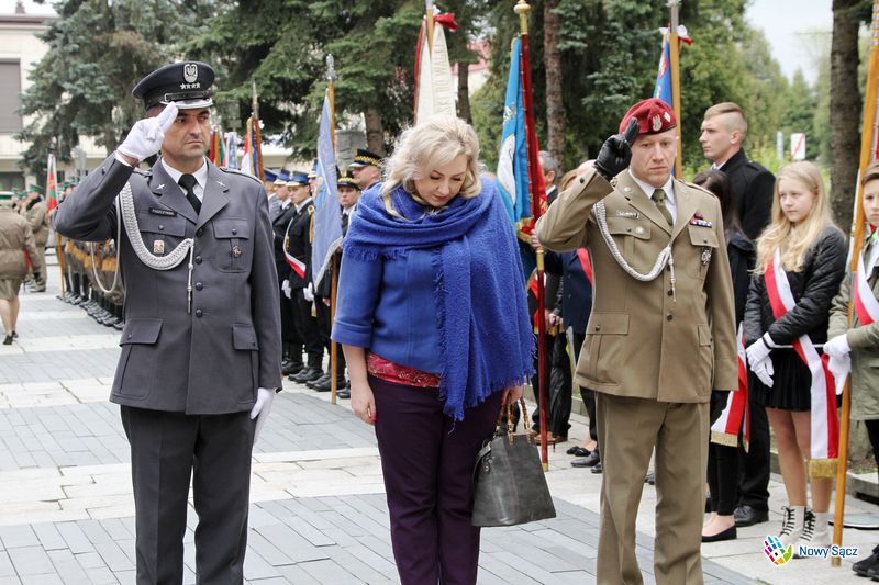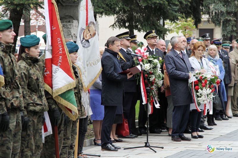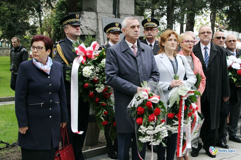 Okolicznościowe przemówienie wygłosił zastępca prezydenta Nowego Sącza Wojciech Piech: - 72 lata temu zakończyła się w Europie najtragiczniejsza w historii ludzkości wojna, II wojna światowa. Spotykamy się w tym miejscu niezmiennie od lat, by zamanifestować pamięć o tamtych odległych, ale wciąż żywych w naszej zbiorowej świadomości latach i wydarzeniach - mówił wiceprezydent. - Gdy ucichły karabinowe i artyleryjskie strzały Europa odetchnęła, odetchnęła Polska i Polacy. Przyszedł czas na bilans tragicznych pięciu lat okupacji, faszystowskiego terroru, gehenny milionów rodaków, lat obozów koncentracyjnych, łapanej, wywózek na roboty, egzekucji, katowni. Nie można zapomnieć też o pakcie Ribbentrop-Mołotow, o 17 września i ataku Związku Sowieckiego na Polskę, o zsyłkach na Sybir, o potwornej zbrodni katyńskiej.