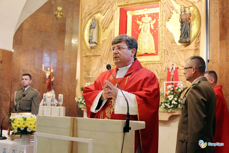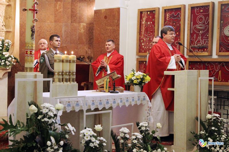 Obchody rocznicowe poprzedziła uroczysta Eucharystia, odprawiona w kaplicy Niepokalanego Poczęcia Najświętszej Marii Panny przez Prepozyta Kapituły Kolegiackiej w Nowym Sączu ks. dr Jerzego Jurkiewicza. Mszę współcelebrowali kapelan Karpackiego Oddziału Straży Granicznej ks. Robert Młynarczyk oraz proboszcz Parafii św. Kazimierza ks. dr Jan Siedlarz, który wygłosił również homilię.