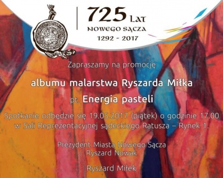 "Energia pasteli" Ryszarda Miłka w nowosądeckim ratuszu. Prezydent Nowego Sącza Ryszard Nowak oraz autor zapraszają w najbliższy piątek (19 maja) na promocję albumu malarstwa pod tym właśnie tytułem. Wydarzenie wpisuje się w obchody 725-lecia Nowego Sącza.