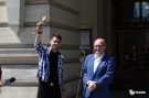 - Przekazuję wam ten klucz z pełnym zaufaniem, że przez te kilka dni będziecie doskonałymi włodarzami, przynajmniej na tyle, żeby dobrze zabawić sądeczan i pokazać, że miasto Nowy Sącz, to także miasto studentów - mówił do sądeckich żaków prezydent Ryszard Nowak, a klucz do bram miasta przekazał na ręce Marka Uszko, przewodniczącego Uczelnianej Rady Samorządu Studentów PWSZ.