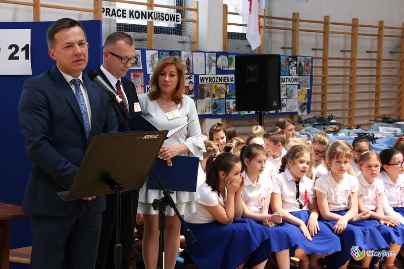 - Bardzo się cieszę z obecności szanownych gości w Nowym Sączu, mieście jak zawsze gościnnym – powiedział zastępca prezydenta Wojciech Piech. - Chciałbym wyrazić satysfakcję, zadowolenie z faktu, iż szkoła pod pani kierownictwem realizuje ten projekt już od kilku lat. W ten sposób nadaje treści polityce historycznej państwa. Ona przyjmuje konkretny kształt właśnie w postaci tego rodzaju działań jak ten konkurs – podkreślił zastępca prezydenta, zwracając się do dyrektor SP 21 Haliny Węgrzyn.