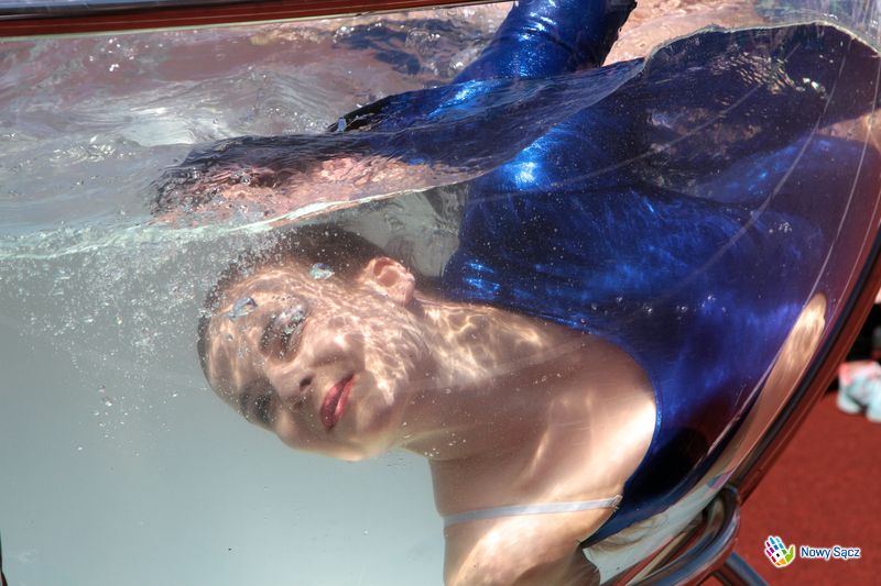 Jedną z niespodzianek na zakończenie II Festiwalu Biegowego Sądeckich Wodociągów "Woda Źródłem Sukcesu" był widowiskowy pokaz w kuli wodnej (tzw. waterbowl act) w wykonaniu wielokrotnej mistrzyni Polski w akrobatyce sportowej Anny Filipowskiej.