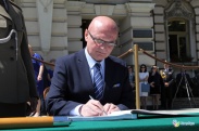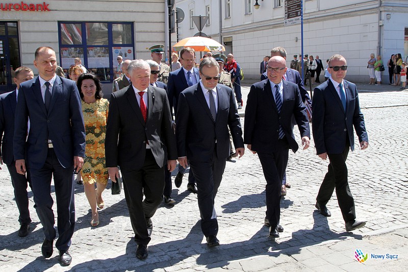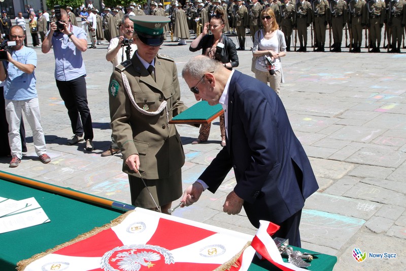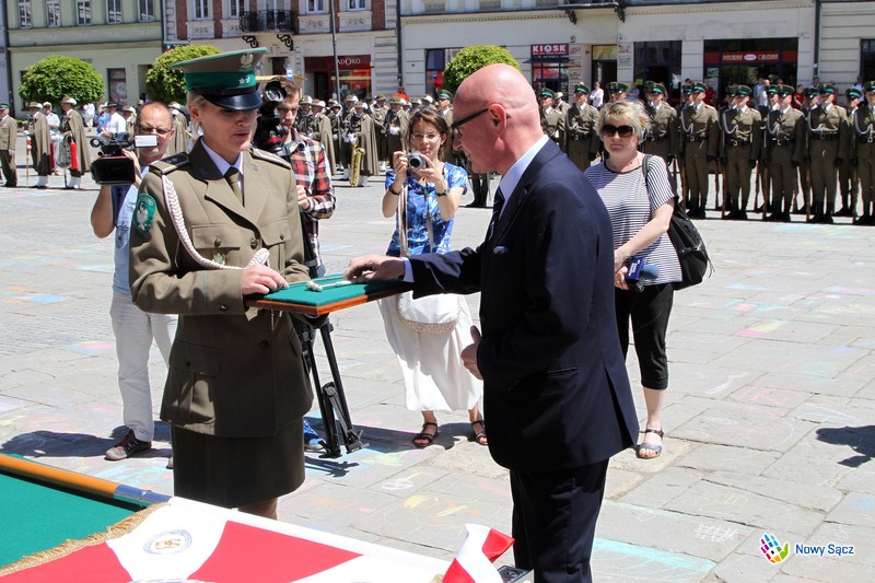 Podczas uroczystości na rynku odczytano akty ufundowania oraz nadania sztandaru i imienia. Warto zaznaczyć, że sztandar został ufundowany z dobrowolnych wpłat mieszkańców Sądecczyzny i całej Małopolski. Przekazali go rodzice chrzestni: ppłk SG Renata Obrzut i senator Stanisław Kogut. Przekazanie poprzedziło symboliczne wbijanie przez fundatorów pamiątkowych gwoździ w drzewce sztandaru i wpisanie się do księgi pamiątkowej. Wśród uczestników tego miłego zwyczaju był prezydent Ryszard Nowak.