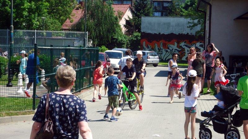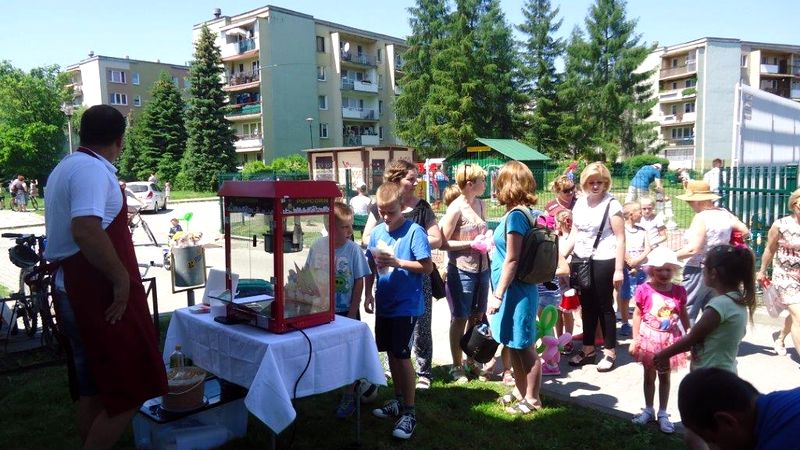 Dzieci mogły brać udział w licznych grach i konkursach, takich jak warcaby plenerowe, tor przeszkód, rysunek na asfalcie czy rzut do palika. Dużym zainteresowaniem cieszyła się konkurencja rodzinna - trafienie piłką na wędce do celu, a także bieg w workach, rzut do kosza, a nawet rzut beretem - atrakcyjna i zabawna konkurencja, w której udział brały zarówno dzieci, jak i dorośli. Organizatorzy zaprosili wszystkich do zabawy przy muzyce i konkurs tańca.