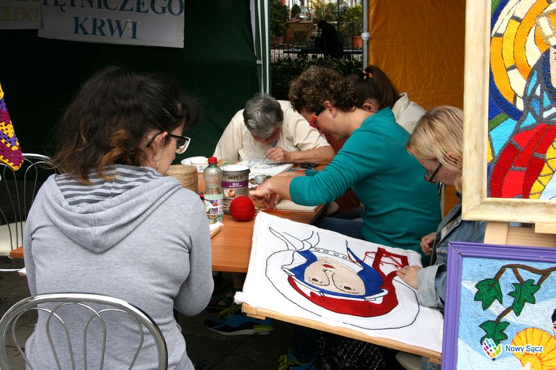 N a wystawie podopiecznych dziennego ośrodka wsparcia dla osób niepełnosprawnych można zobaczyć obrazy, wyroby hafciarskie, ceramikę, rękodzieło i wiele innych prac. Podopieczni Ośrodka wykonywali swoje prace na oczach widzów. – Terapeuci tylko ich inspirują, pomagają tematycznie czy podpowiadają technikę, ale pracę wykonują sami - tłumaczy Anna Szczepanik-Dziadowicz, dyrektor ŚDS w Nowym Sączu. - Tak jak widzimy: jedna pani już się zabrała do malowania, kolejne do haftowania i tak to się u nas odbywa na terapii manualnej. To zresztą tylko mały wycinek tego, co się dzieje w Środowiskowym Domu Samopomocy, bo tych terapii jest mnóstwo – dodaje dyrektor Szczepanik-Dziadowicz.