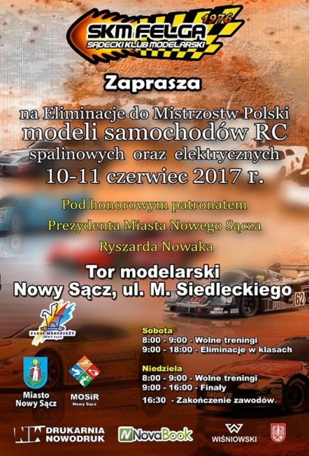 W najbliższy weekend (10-11 czerwca) na torze modelarskim przy ul. Siedleckiego odbędą się Eliminacje Mistrzostw Polski modeli samochodów RC. Wydarzenie odbywa się pod patronatem honorowym Prezydenta Nowego Sącza Ryszarda Nowaka, a jego organizatorem jest Sądecki Klub Modelarski FELGA.