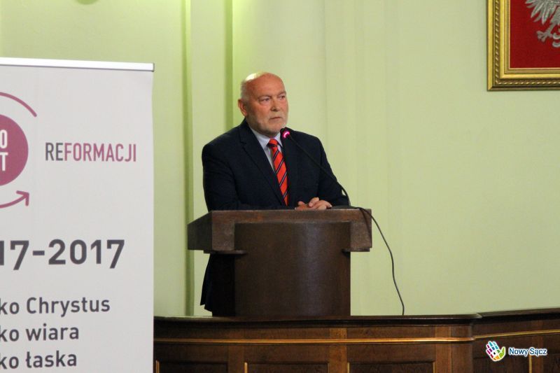 Zastępca prezydenta Jerzy Gwiżdż podziękował organizatorom za zorganizowanie obchodów500-lecia reformacji w sądeckim ratuszu. - Bardzo dziękuję proboszczowi sądeckiej parafii ewangelickiej za to, że te główne obchody 500-lciareformacji w Nowym Sączu organizowane są w tym ratuszu pod patronatem prezydenta miasta Nowego Sącza. To ważne, bo to jest taki znak świadczący o tym, że pomiędzy parafiami, a władzami Nowego Sącza jest pełne uszanowanie, pełne zrozumienie i pełna wzajemna za siebie odpowiedzialność. Dziękuję zatem, że spotykamy się tutaj właśnie dzisiaj- powiedział Jerzy Gwiżdż.