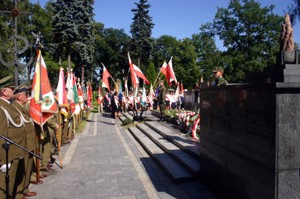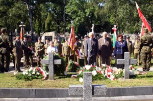 Uczestnicy uroczystości na kwaterze poległych żołnierzy wojny obronnej 1939 roku złożyli wieńce i wiązanki kwiatów.