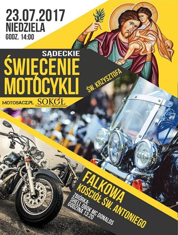 Sądeckie Forum Motocyklistów Motosacz.pl zaprasza na kolejne wydarzenia dla wielbicieli jednośladów. 23 lipca (niedziela) o godz. 14:00 w kościele na Falkowej odbędzie się msza święta i tradycyjne święcenie motocykli przy okazji imienin patrona wszystkich podróżujących - św. Krzysztofa.