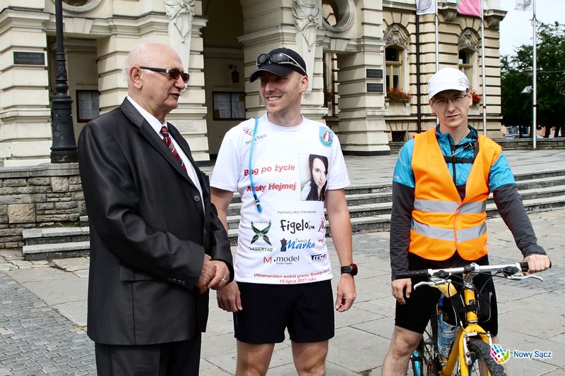Biegowy ambasador Nowego Sącza Karol Trojan tuż po godzinie 10:00 wyruszył spod sądeckiego ratusza na trasę wyjątkowego biegu. Dlatego wydarzenie jest tak wyjątkowe? Bo po pierwsze akcja wspiera w ten sposób chorą Anetę Hejmej, która czeka na operację ratującą jej życie. Po drugie Karol Trojan włącza się w 725. rocznicę lokacji Nowego Sącza i dlatego biegnie wzdłuż granic administracyjnych miasta, w sumie około 55 km. Po trzecie główny bohater biegu pokonuje całą trasę boso, a dla bezpieczeństwa towarzyszy mu jego brat Irek.