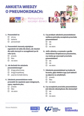 Prosimy o wypełnienie anonimowej ankiety wiedzy na temat zakażeń pneumokokowych i przekazanie jej do Wydziału Zdrowia i Opieki Społecznej Urzędu Miasta Nowego Sącza.
