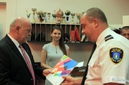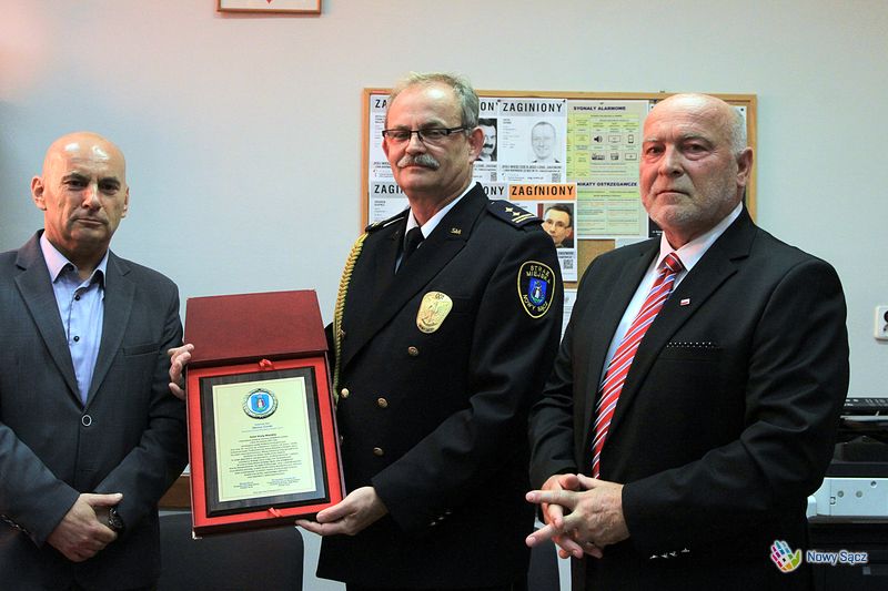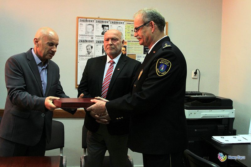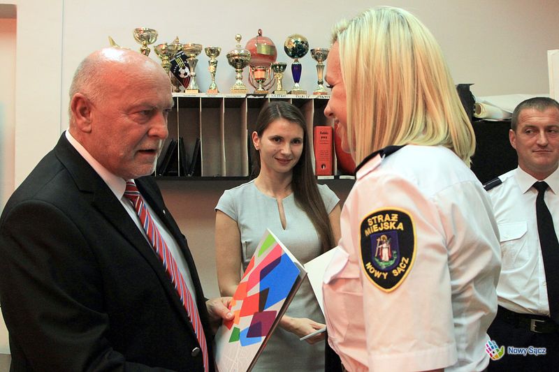Przemysław Gawłowski wręczył na ręce komendanta Straży Miejskiej Dariusz Górskiego pamiątkowy grawerton od przewodniczącej Bożeny Jawor i Rady Miasta Nowego Sącza. Dziękując za życzenia i gratulacje komendant Górski przypomniał, że Straż Miejska w Nowym Sączu utworzona została w czerwcu 1990 roku jako jedna z pierwszych w Polsce. Zostało to docenione, bo pierwszy zjazd komendantów straży miejskich z całego kraju odbył się właśnie w naszym mieście.